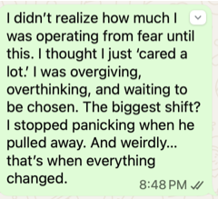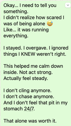 You’re not. You were never taught how to stay emotionally steady inside love. That’s different.